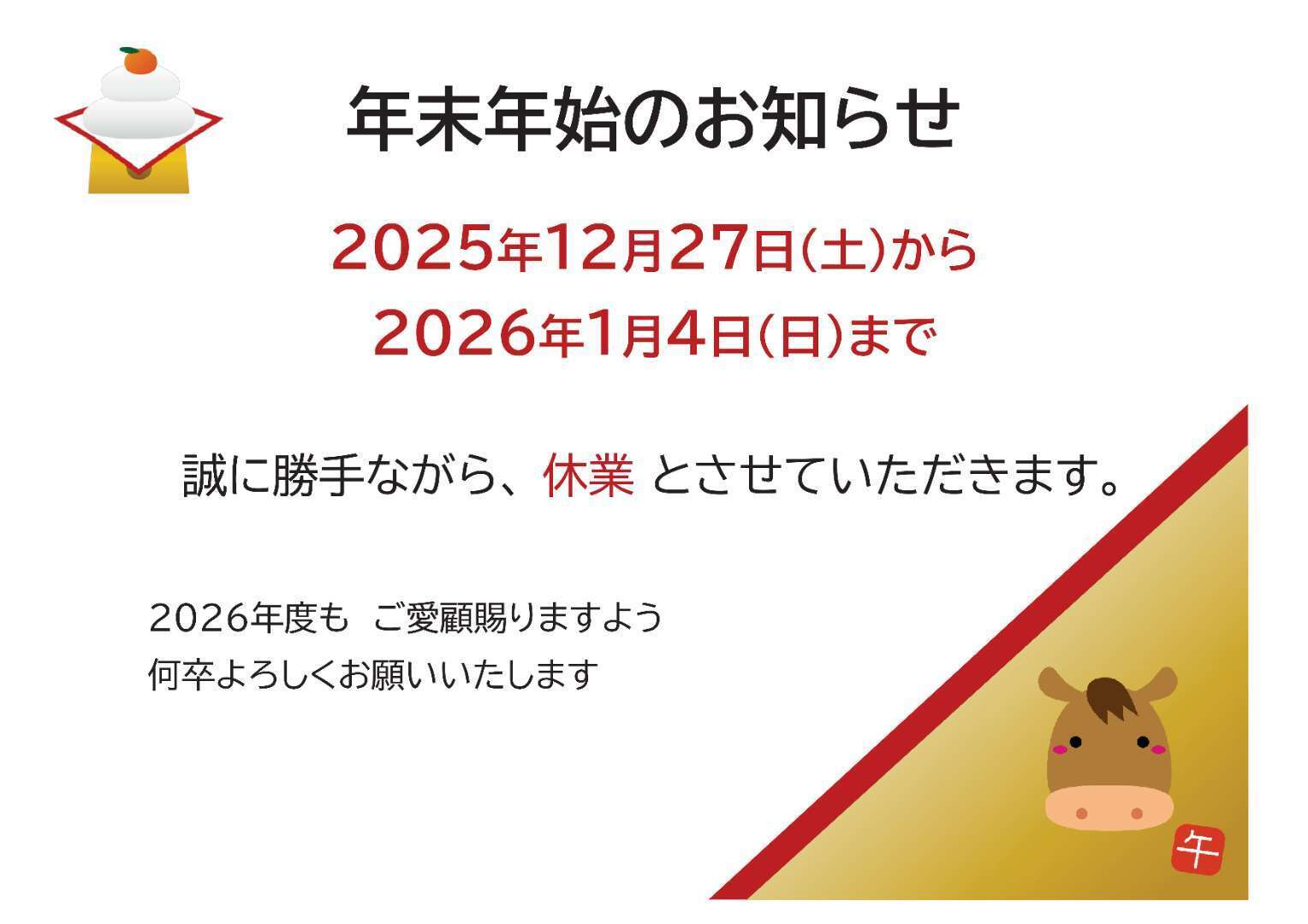 <年末年始休暇>