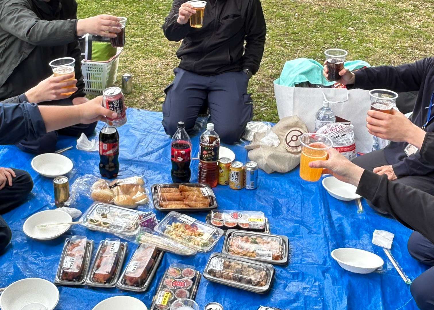 今回のお花見は、当社に出向してくれていたメンバーの送別会も兼ねて。