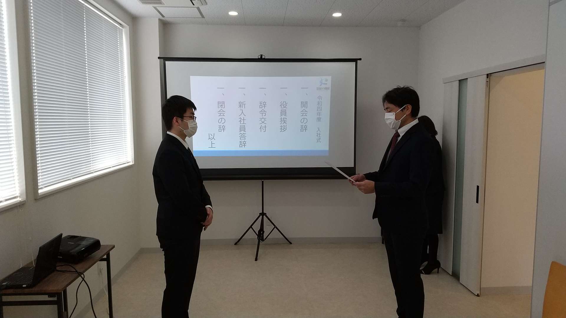 新型コロナウイルス感染拡大防止のため、十分な感染対策の上、対面で入社式が開催されました。